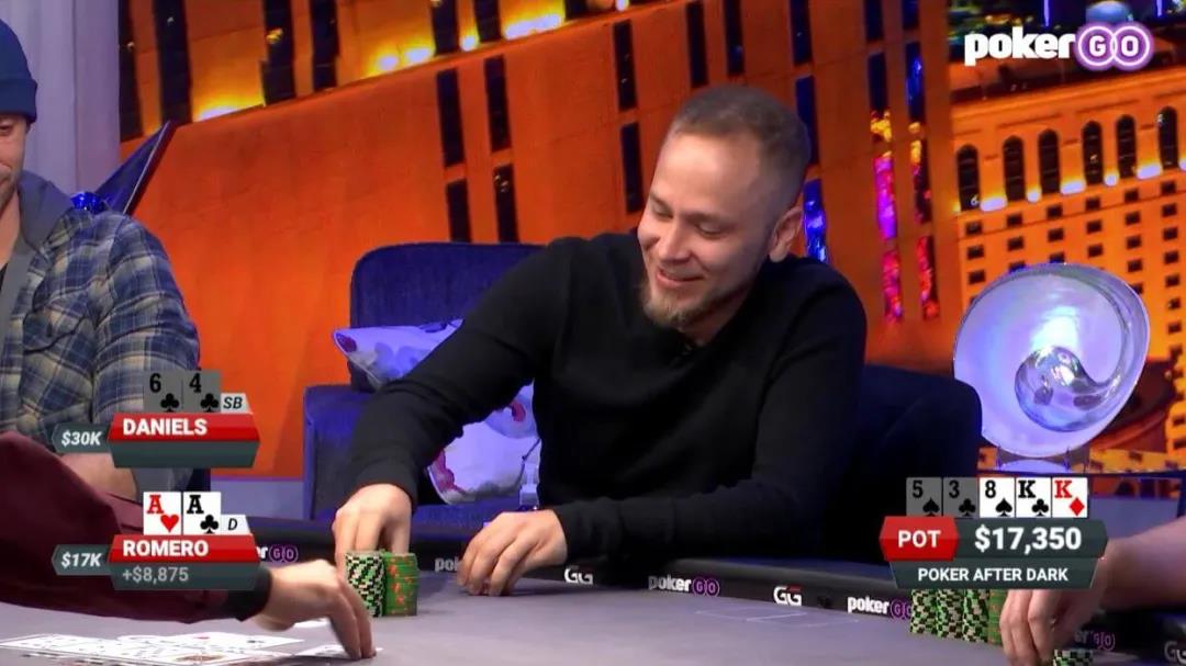 尽管Jake Daniels有很多outs,但是K♦并不是其中之一,James Romero成功价值最大化,拿下这个$17,350底池,让自己的筹码翻倍。